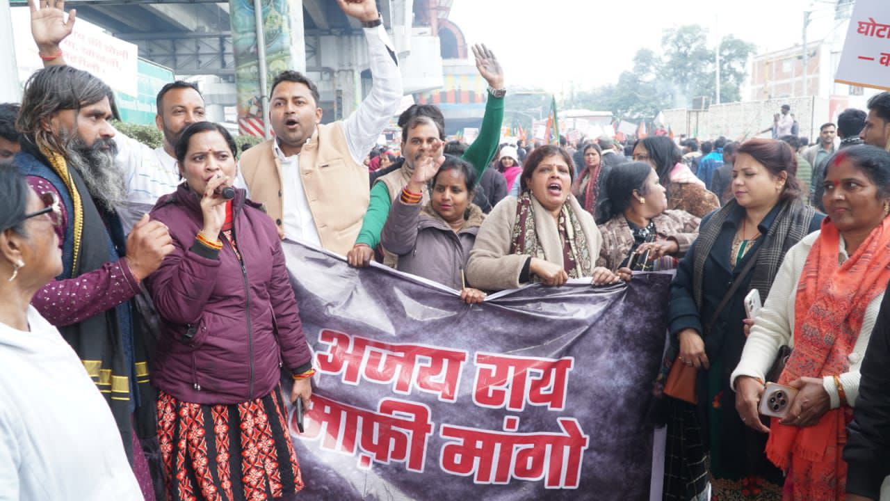 डॉ. राजेश्वर सिंह के समर्थन में सड़क पर उतरे पांच हजार से अधिक समर्थक, कांग्रेस प्रदेश अध्यक्ष के बयान के विरोध में पुलिस को सौंपा ज्ञापन