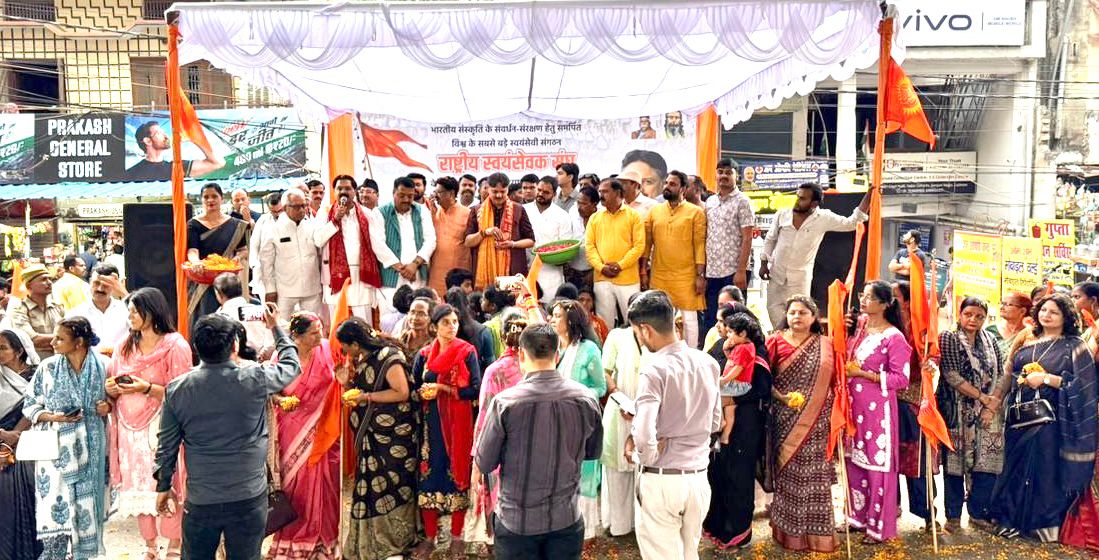 आरएसएस स्वयंसेवकों पर विधायक डॉ. राजेश्वर सिंह ने बरसाए फूल